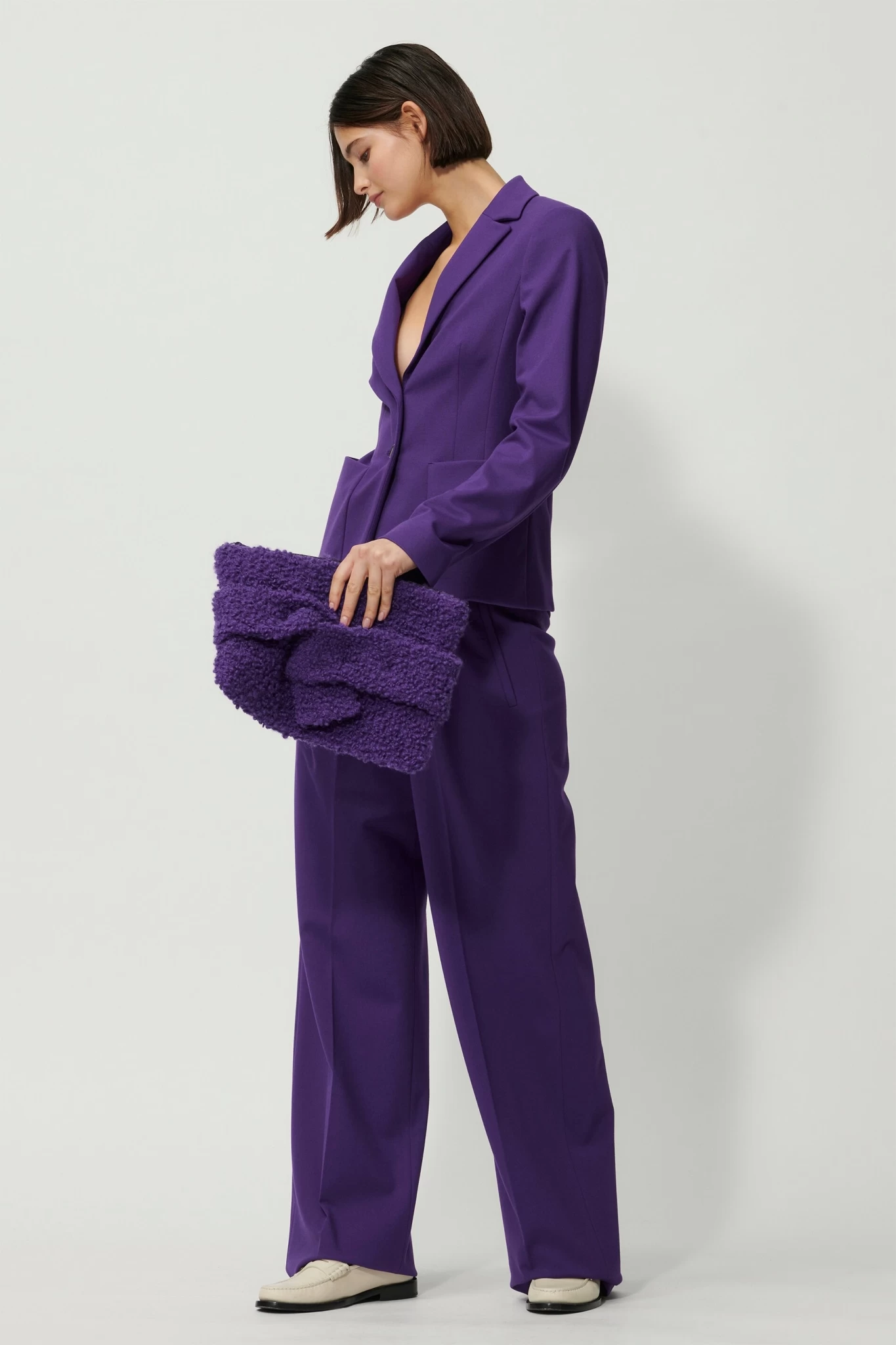 Klassisch geschnittener Blazer mit einreihiger Knopfleiste aus weichem Punto Milano-Stoff. Auf der Vorderseite befinden sich zwei aufgesetzte Eingrifftaschen. Unser Model ist 178 cm groß und trägt Größe 36.