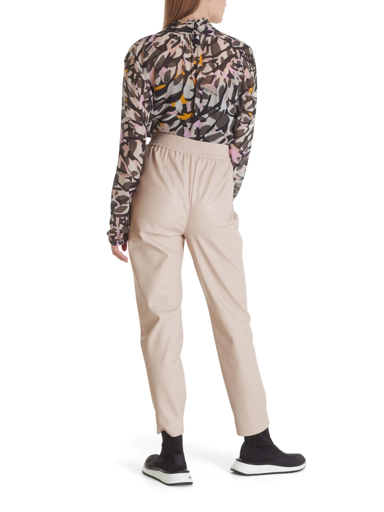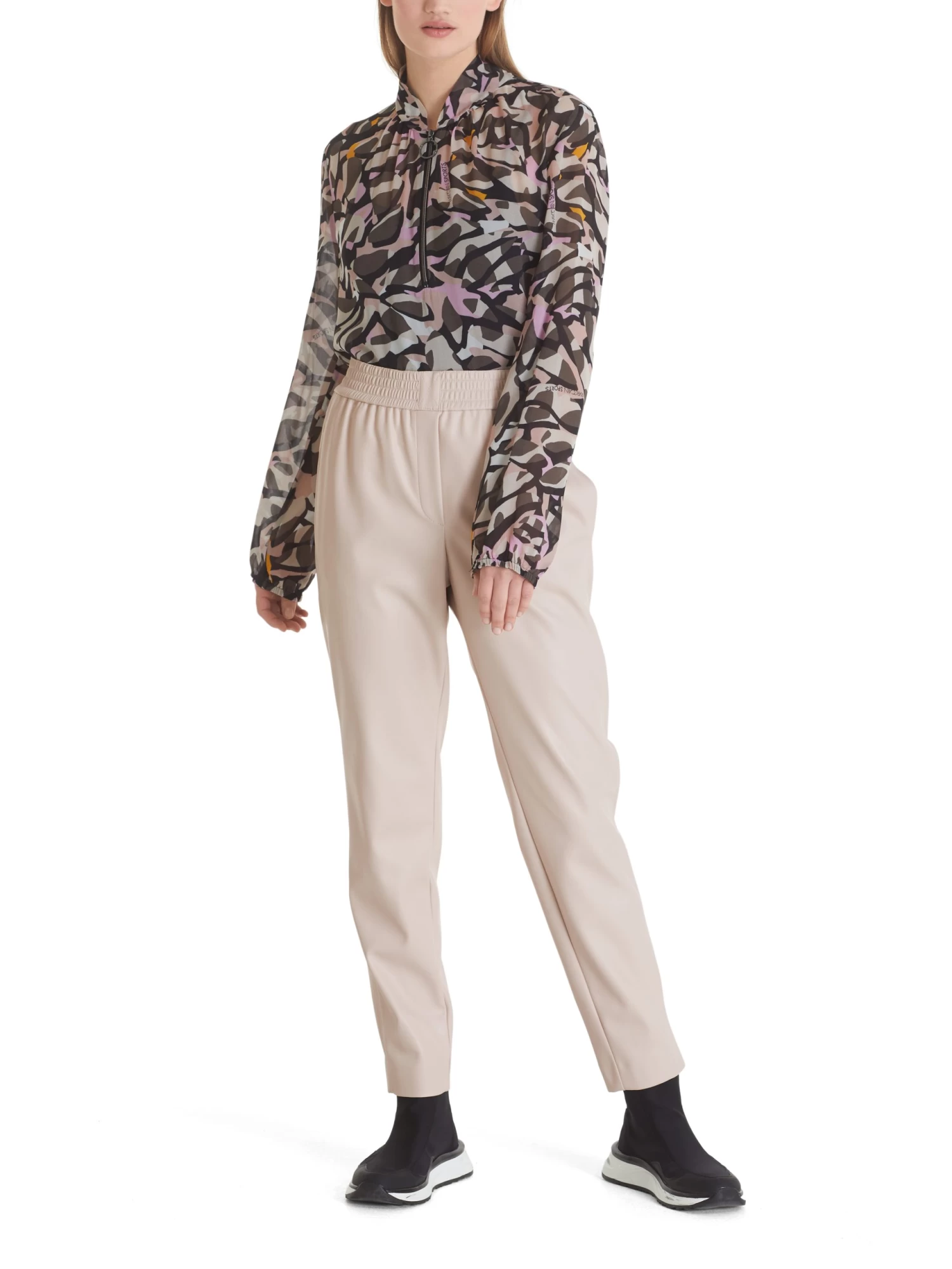Die Hose präsentiert sich aus einer soften Fun-Nappa-Qualität, die sehr angenehm zu tragen ist und sehr hochwertig aussieht. An beiden Seiten sind Eingrifftaschen platziert. Der Stretchbund sorgt für eine perfekte Passform.