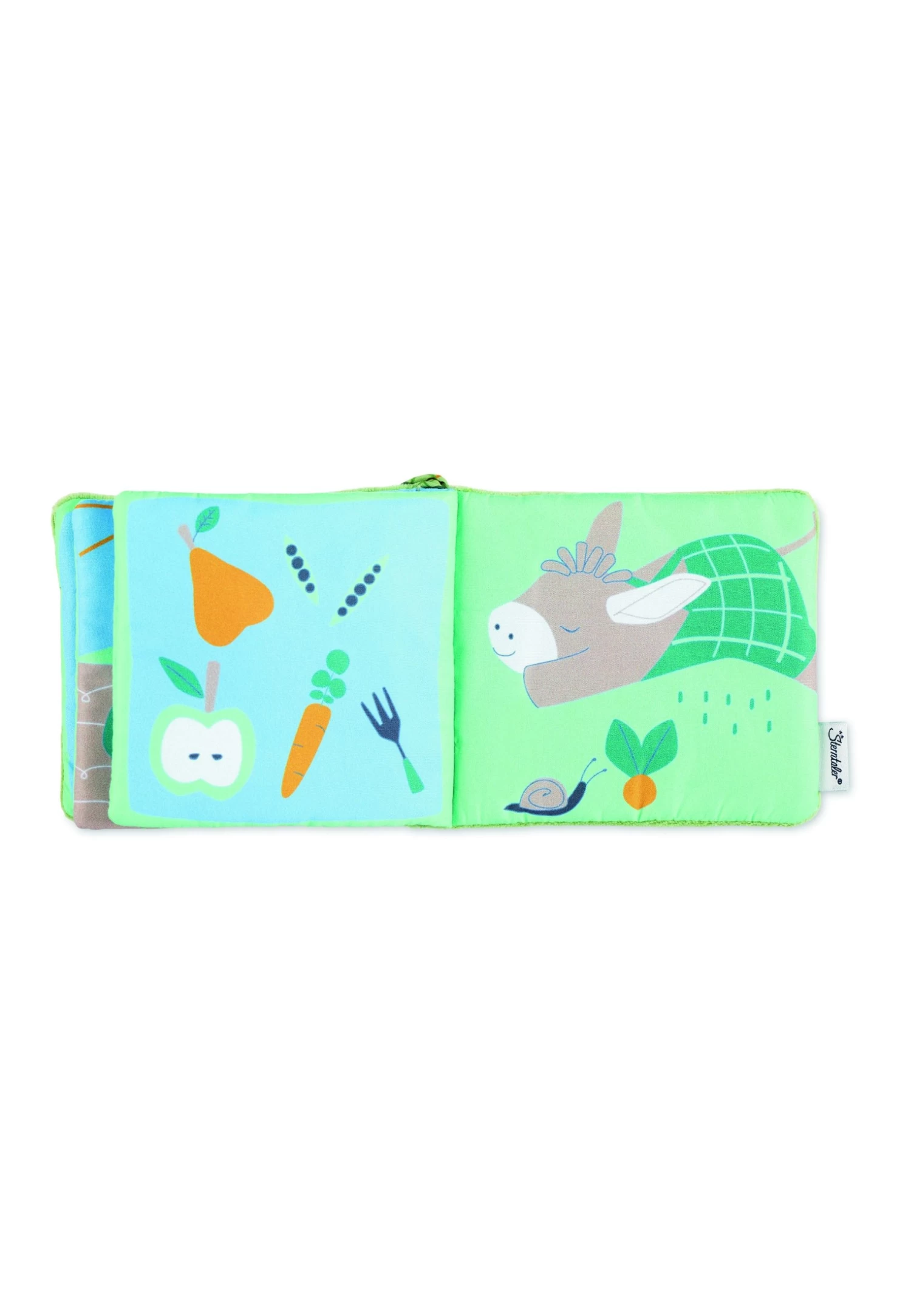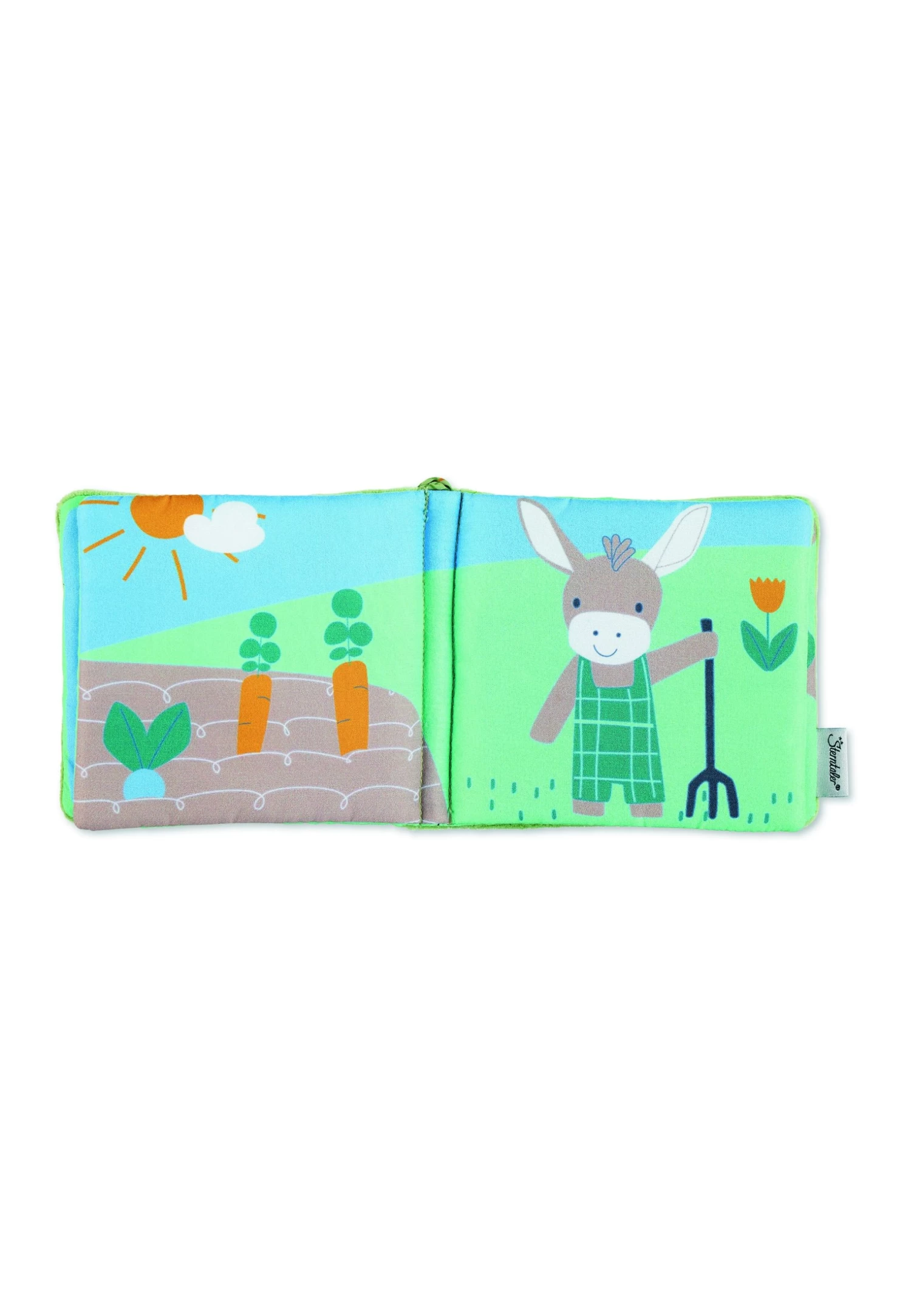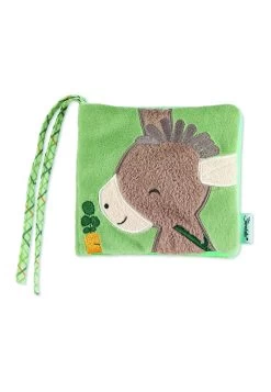 Das weiche Spielbuch mit Motiv Esel Emmilius in Basilikumgrün und Hellblau aus Nicki, Flauschstoff und Polycotton ist für kleine Kinderhänder besonders leicht zu greifen. Die 8 extra dicken Seiten lassen sich leicht umblättern. Die süßen und farbenfrohen Motive regen die Sinne Ihres kleinen Schatzes an und ermutigen zum „Lesen“ und Entdecken. Dank der integrierten Quietsche und dem Knisterpapier ist das Spielbuch auch akustisch ein absolutes Highlight. Durch das praktische Befestigungsband lässt sich das Spielbuch schnell und einfach am Kinderwagen oder am Autositz festbinden und ist somit auch der perfekte Begleiter für unterwegs.