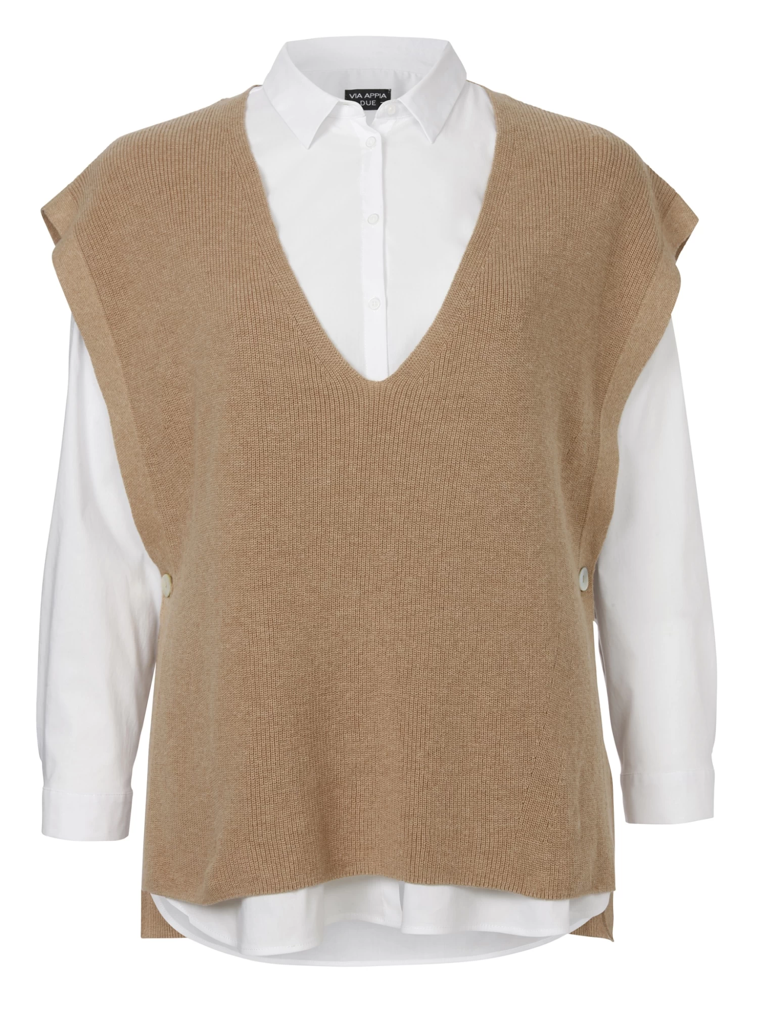 - Zierknöpfe als Verschlusselemente an den Seiten